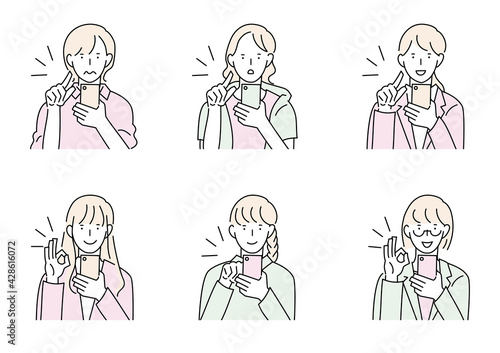 Face serum application steps, line art style vector illustration. Use of anti aging, antioxidant, hydrating serums. Face skin care routine, beauty procedure.