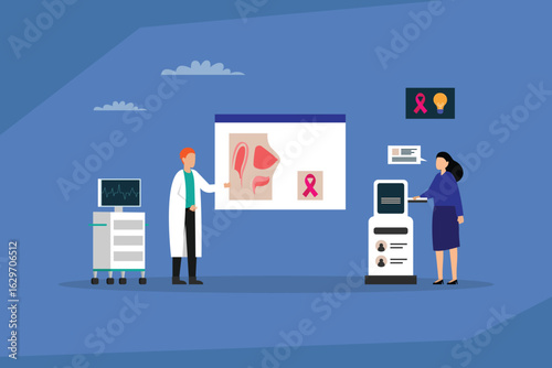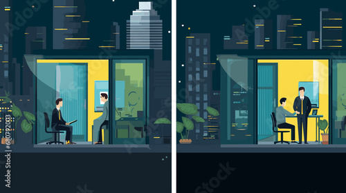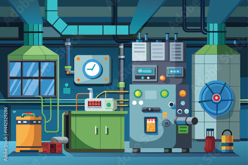 Vector illustration of factory turner using turning machine to make metal parts. Engineer and other factory workers controlling production flat style design elements.