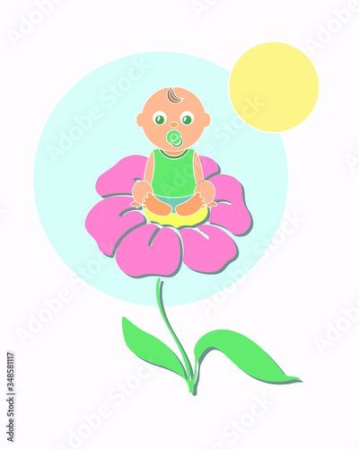 Cute fairy vector illustration. Cartoon magic girl character with wings. Fairytale princess in costume sitting on flower and waking up. Fantasy little forest pixie isolated on white background