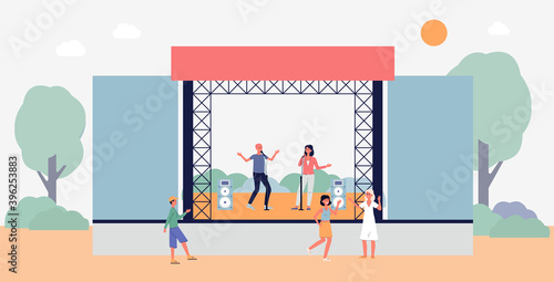 Fairy tales landing page website template. Vector flat illustration of grandfather reading book to his granddaughter about medieval knights joust while sitting on sofa.