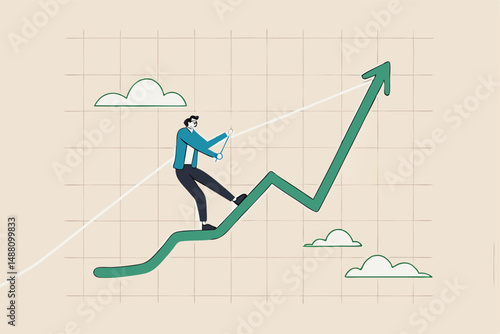 Falling down arrow chart, businessman, money and trophy cup, flat vector illustration. Business failure, collapse, financial problems, bankruptcy, economic crisis.