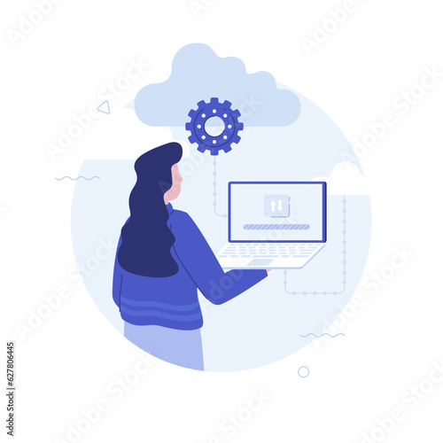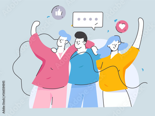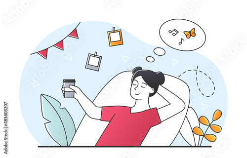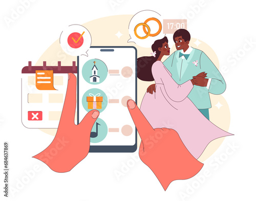 Happy couple planning family budget, vector illustration. Financial planning, money managing and saving concept for web banner, website page etc.