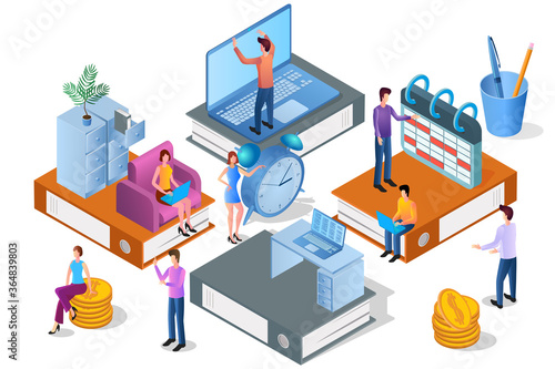 Family cooking, landing page design, website banner template, flat vector isometric illustration. Father, mother and daughter making cookies together in kitchen. Family lifestyle.