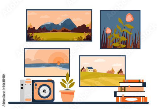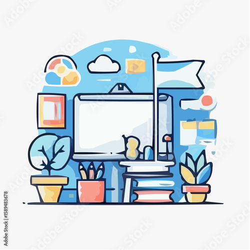 Family couple watch tv set at home. House living room interior with TV. Stay at home concept illustration. Vector web site design template. Landing page website illustration.