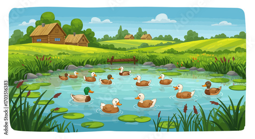 Family fishing spend time together cartoon vector illustration. Fishery hobby, travelling, active vacation and camping concept