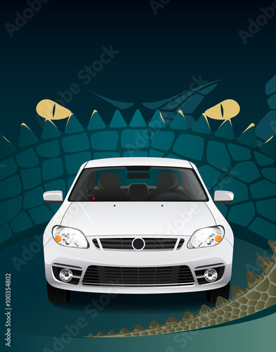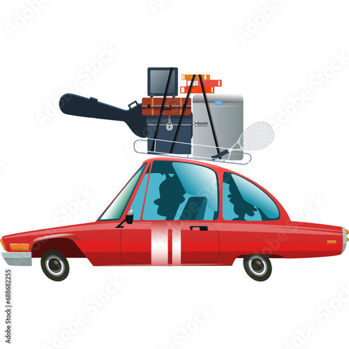 Family going to vacation by car. Travel concept vector illustration in cartoon style.