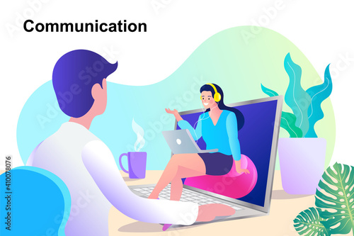 Grandparents chatting online with their adult children and grandson, flat vector illustration. Online chat, instant messaging. Family internet communication.