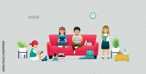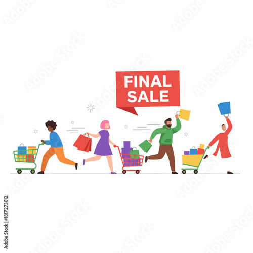Vector illustration of father, mother and daughter doing shopping at grocery store or supermarket. Family purchases concept design element in flat style.
