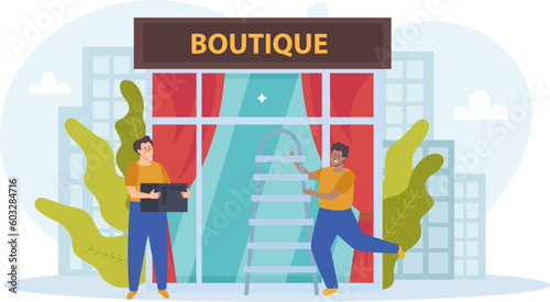 Family with child immigration scene vector illustration. Refugees, forced displacement or safety on board travel concept. Father, mother and kid with suitcase over city background