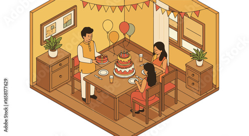 Family with kid buying fish in aquarium in pet shop concept vector illustration. Animal store interior with aquarium and parrot in cage.