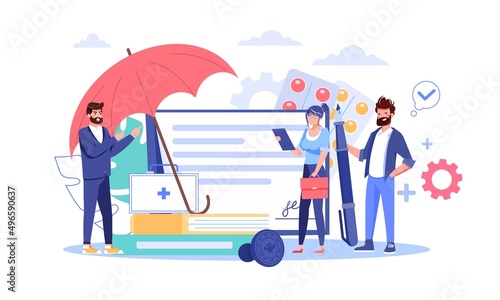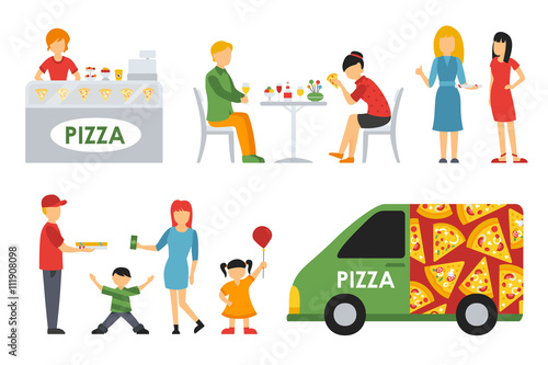 Farm worker cartoon character in garden isolated set. Farmer, gardener, tractor driver, lawnmower at work vector illustration