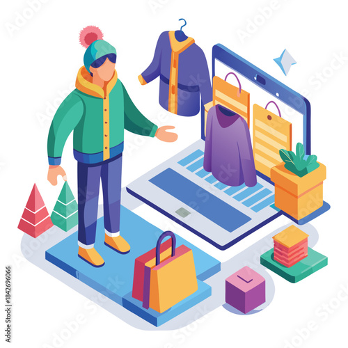 Farmer making crop growth analysis in greenhouse using robotics technologies, flat vector isometric illustration. Smart greenhouse horticulture robotics. Smart farming.