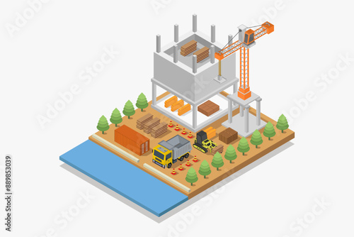 Farmer making crop growth analysis in greenhouse using robotics technologies, flat vector isometric illustration. Smart greenhouse horticulture robotics. Smart farming.