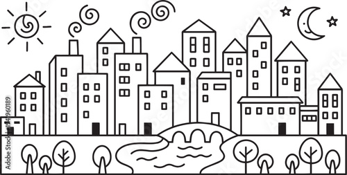 Farming concept vector illustration. Modern thin line art flat style design element in the shape of farm building for website banners and printed materials.