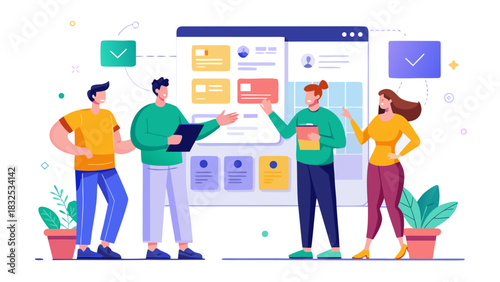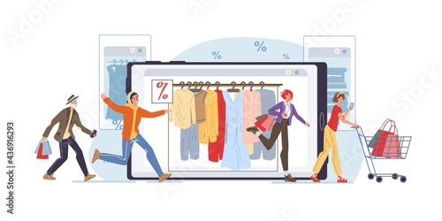 Personal fashion online stylist consulting client via smartphone vector illustration. Professional shopper giving shopping guidance and advice regarding choice new apparel
