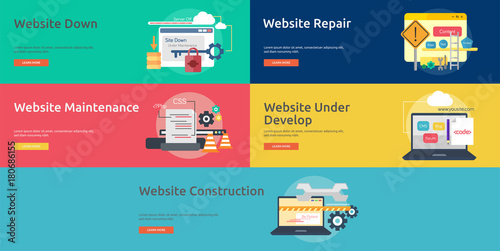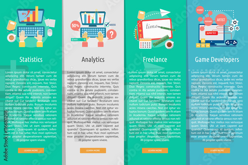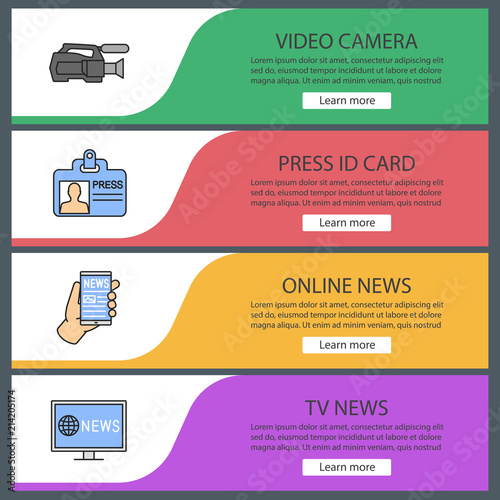 Vector set of fast food cart horizontal banners. Bakery, coffee, beer and fruit cart isometric icons, place for text.