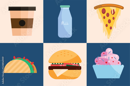 Fast food courier landing page design, website banner template set, flat vector illustration. Male courier delivering meal to customer. Delivery man profession, job. Home food delivery service.