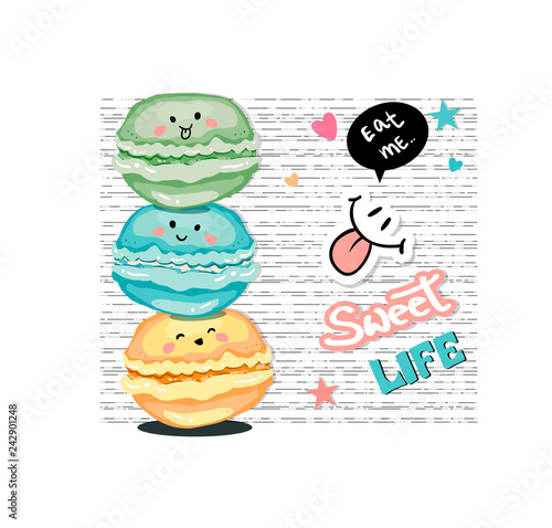 Fast food set. Flat cartoon classic american cheese burger, pizza slice, fried chicken leg and french fries, soda drink plastic bottle, muffin and cakes desserts vector illustration isolated on white