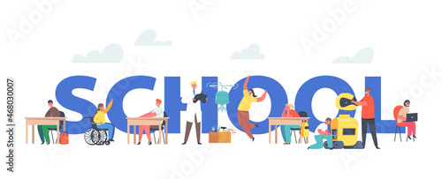 FMCG fast moving consumer goods typography banner. Buyers with shopping cart and basket, flat vector illustration. Low cost and sold quickly products. Business and commerce, FMCG retail.