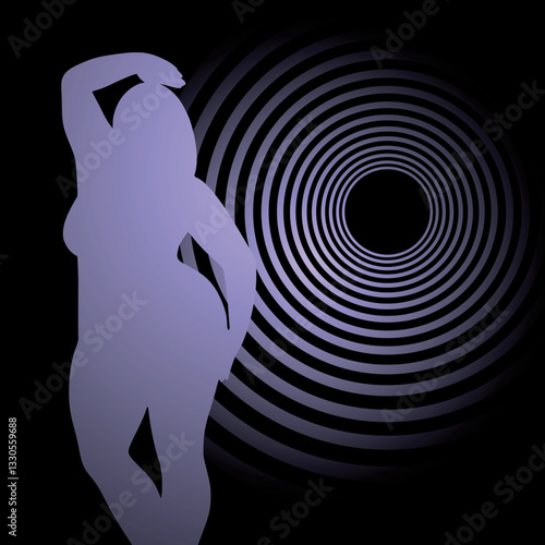 Fat people icon illustration. Vector woman with overweight having stomach problem enjoy junk fast food. Unhealthy lifestyle obesity disease risk, eating disorder concept. Paper cut style