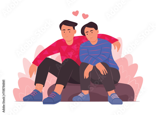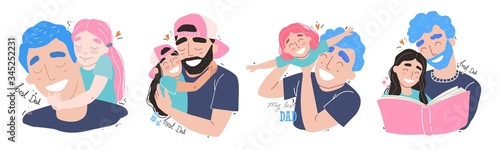 Father and daughter reading together on home sofa vector icon isolated on white background