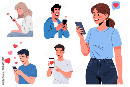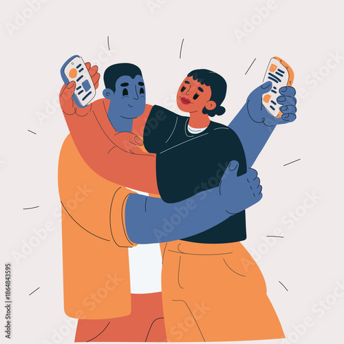 Father and daughter taking selfie on mobile camera vector icon isolated on white background