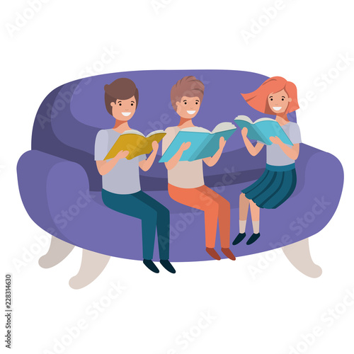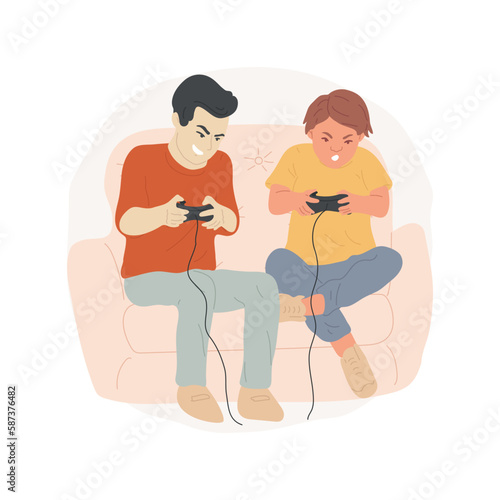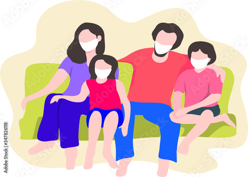 Father and mother comforting caring crying sad little girl daughter vector illustration. Parents supporting unhappy stressed child sitting on home sofa isolated on white background