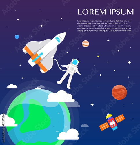 Father and son looking through telescope spending time together outdoors vector illustration. Dad and boy exploring galaxy universe and celestial bodies in starry sky