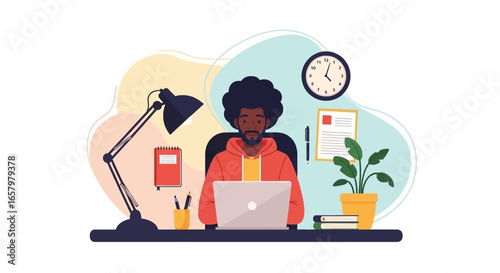 Father making model of sailboat and his son watching him. Vector illustration in flat style. Scale model building, model ships hobby concept design element