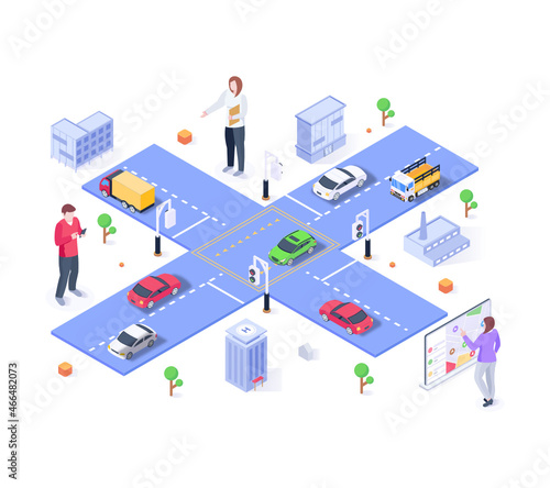 Happy family characters enjoying spending time together at home, flat vector isometric illustration. Father, mother and kid watching tv and making cookies. Family leisure activity, relationship.