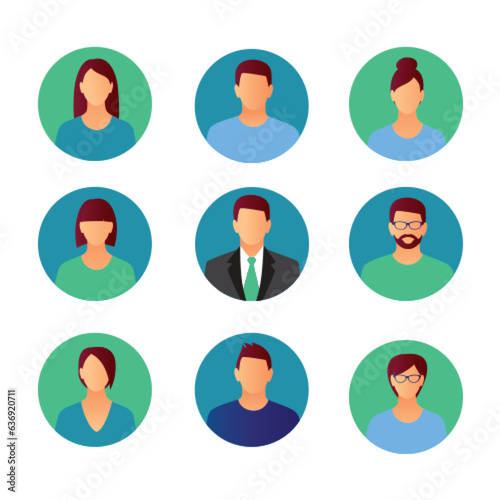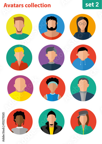 Female avatar icons vector set. People characters in flat style. Design elements isolated on background. Faces with different styles and nationalities.