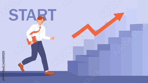 Female boss leader standing on bar chart top and male employee falling down from it, flat vector illustration. Feminism concept.