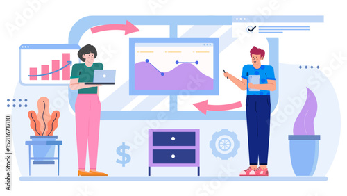 Neonatal resuscitation. Female doctor standing next to newborn baby in incubator, flat vector illustration. Newborn resuscitation.