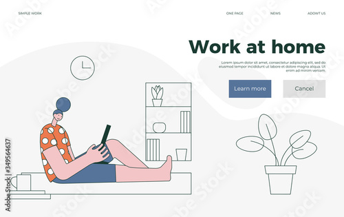 Female photographer takes picture on the nature. Birdwatching concept illustration. Bird photo. Vector web site design template. Landing page website illustration.