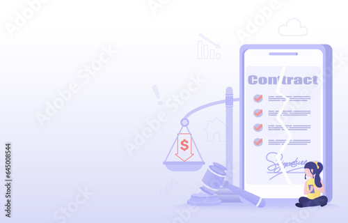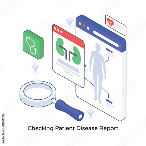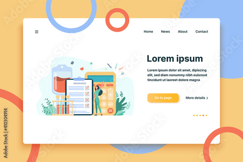 Female scientist analyzing blood in lab microscope. Vector flat illustration. Scientific research, laboratory experiment, science and education. Woman student in medical lab.