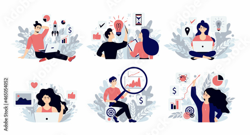 Female witch and fortune tellers vector set. Woman oracle and soothsayer predicting future and destiny scene. Mystic medium girls cooking potion illustration. Supernatural paranormal sorcerer