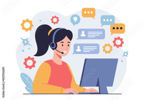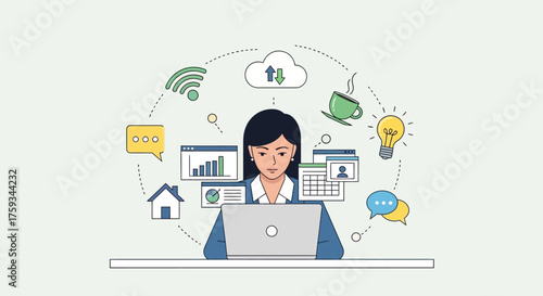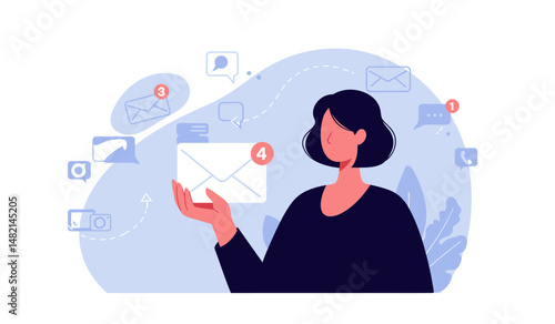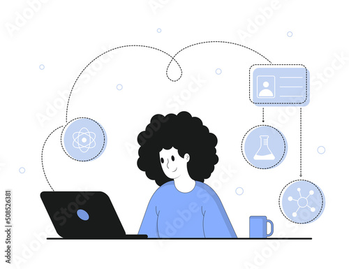 Female writer experiencing creative crisis or block, flat vector illustration. Sad woman sitting at table with clean sheet of paper on it. Creativity crisis, anxiety, fatigue, headache, depression.