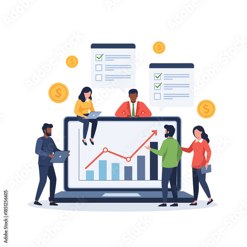 Financial investments concept vector flat illustration. Business people searching for investor.