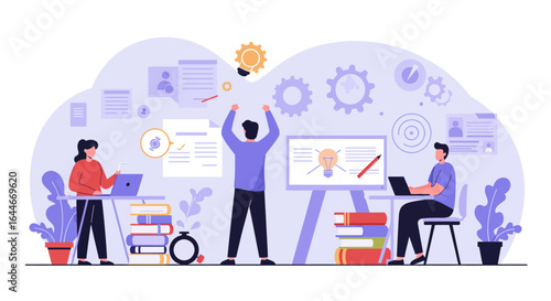 Vector illustration of tiny characters putting dollar coins, card into huge piggy bank. Business and finance, making and saving money, financial investment concept for web banner, website page etc.