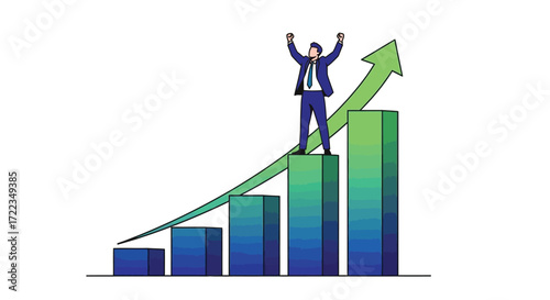 Businessman walking up stairs to trophy cup, vector paper cut illustration. Financial success, business strategy, growth, leadership way to success concept for web banner, website page etc.