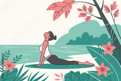 Fireman character in protective clothing and helmet with water hose extinguishing forest on fire vector scene. Dangerous wildfire outbreak and remedial measures illustration