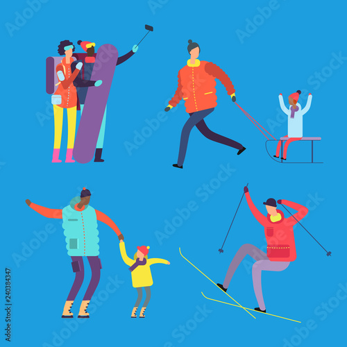 Fisherman with rod and fish vector isolated set. Happy fisher illustration. Sport and hobby leisure activity, hunting tourism on river, pond or lake concept