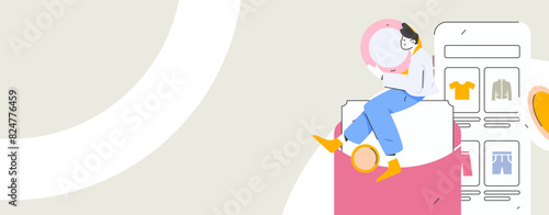 Fishing tackle shop website banner template set, landing page concept vector illustration. Fishing rod, boat, ice fishing equipment.