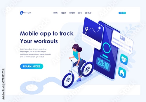 Fitness tracker vector website template, web page and landing page design for website and mobile site development. Sports smart watch bracelet or wristband, wearable technologies.