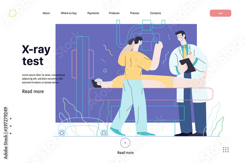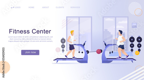 Fitness vector website template, web page and landing page design for website and mobile site development. Gym training with dumbbells and fitness ball, cardio exercises on treadmill.