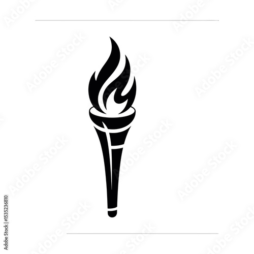 Layered paper cut craft style sport flaming torch silhouette, vector illustration. Sport competition torch relay opening ceremony.