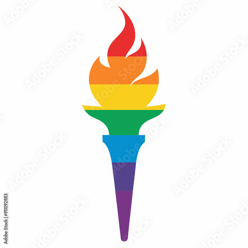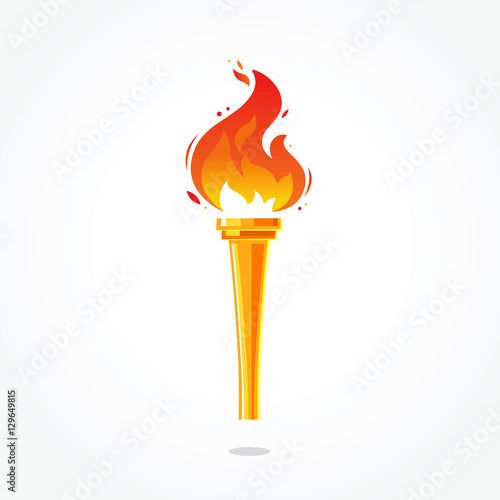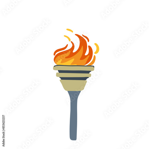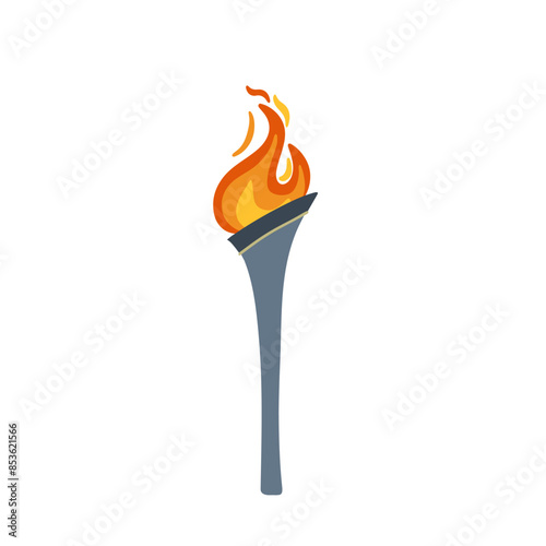 Layered paper cut craft style sport flaming torch silhouette, vector illustration. Sport competition torch relay opening ceremony.