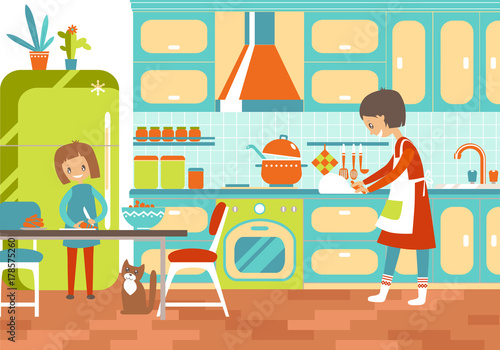 Flight attendant serving food and drinks to passengers on aircraft board vector illustration. Stewardess in uniform offer beverage and meal to people in economy class. Airplane travel