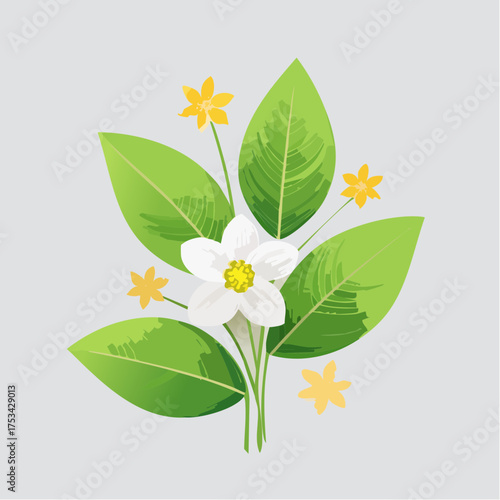 Floral alphabet, vector illustration in paper art style. M, N, O, P English alphabet capital letters with beautiful exotic tropical leaves and flowers.