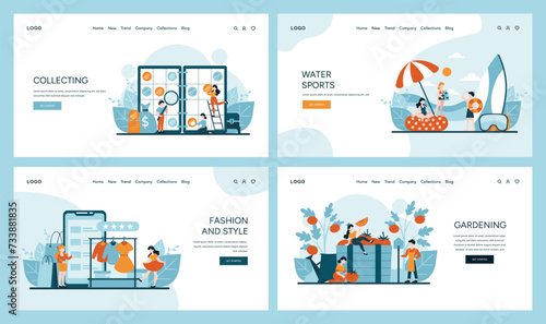 Food, clothes and purchases online delivery vector scene set. People buying goods in internet store using service of order delivery, cashless payment illustration in flat style